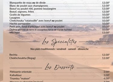 Réservez votre table pour découvrir notre cuisine algérienne authentique et savoureuse au restaurant Le Tassili.